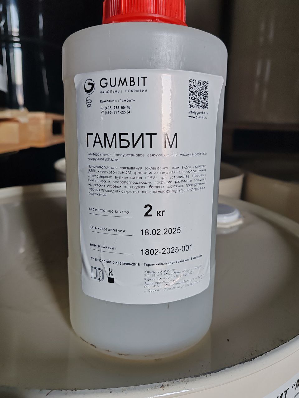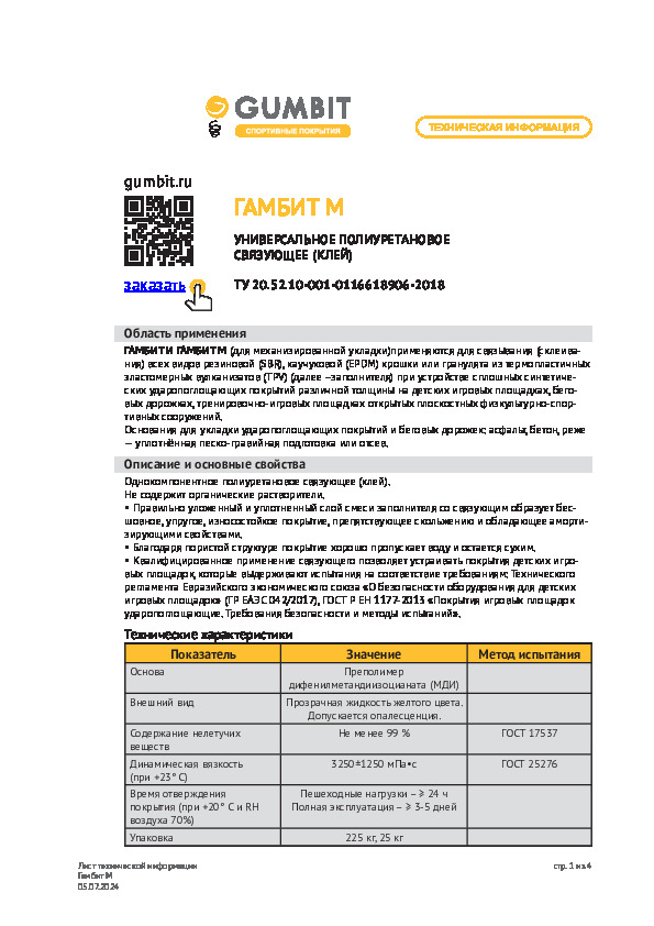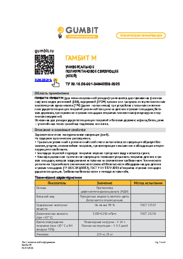 Полимерное связующее. Предназначено для создания спортивных покрытий из резиновой крошки. Хорошо взаимодействует с наполнителем даже при низких температурах — от 3 °C.